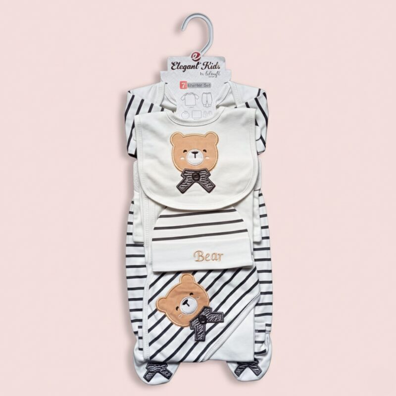 Whether for your own little one or as a thoughtful gift, this 7 pcs bear embroidered starter set is a must-have for newborn essentials.
