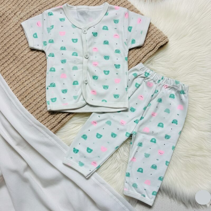 Made from soft, breathable cotton, this two-piece set is kind to delicate skin and helps maintain all-day freshness. Designed with an adorable unisex pattern and gentle color tones, it’s a perfect choice for both baby boys and girls.